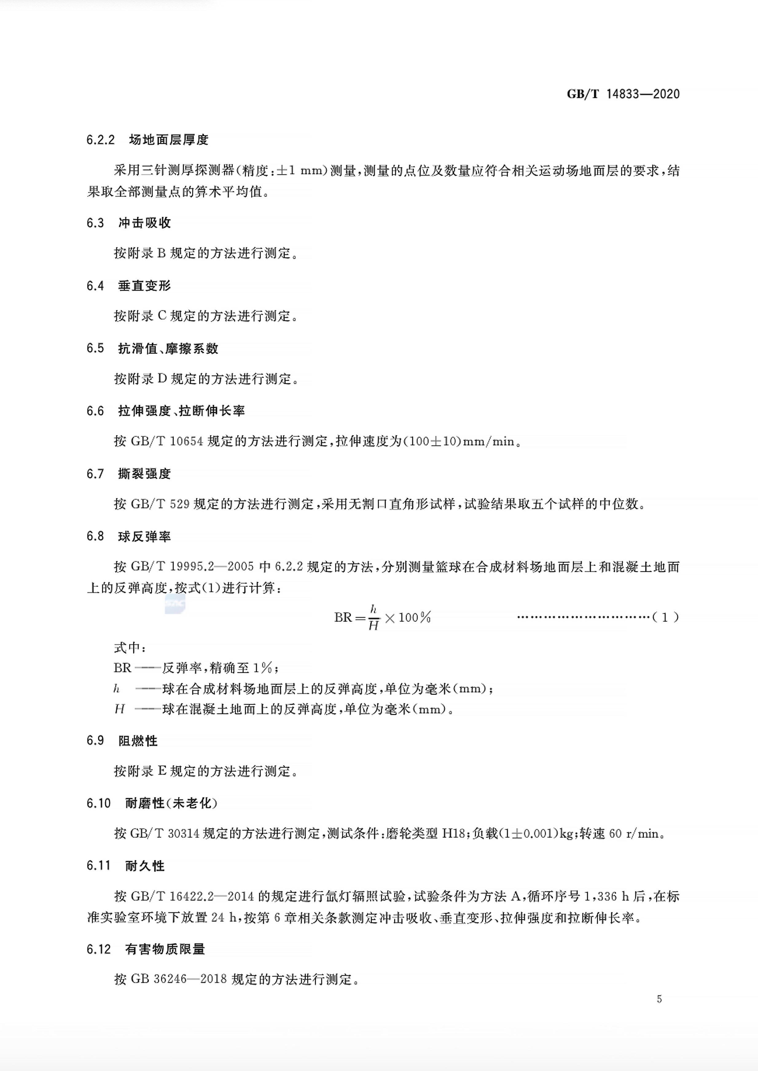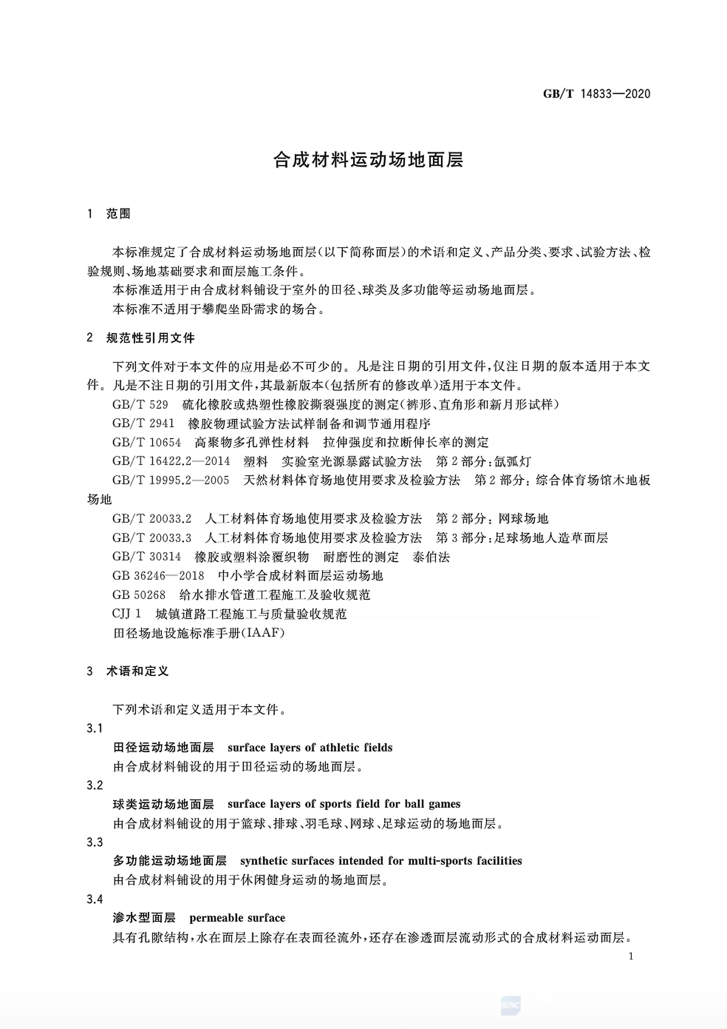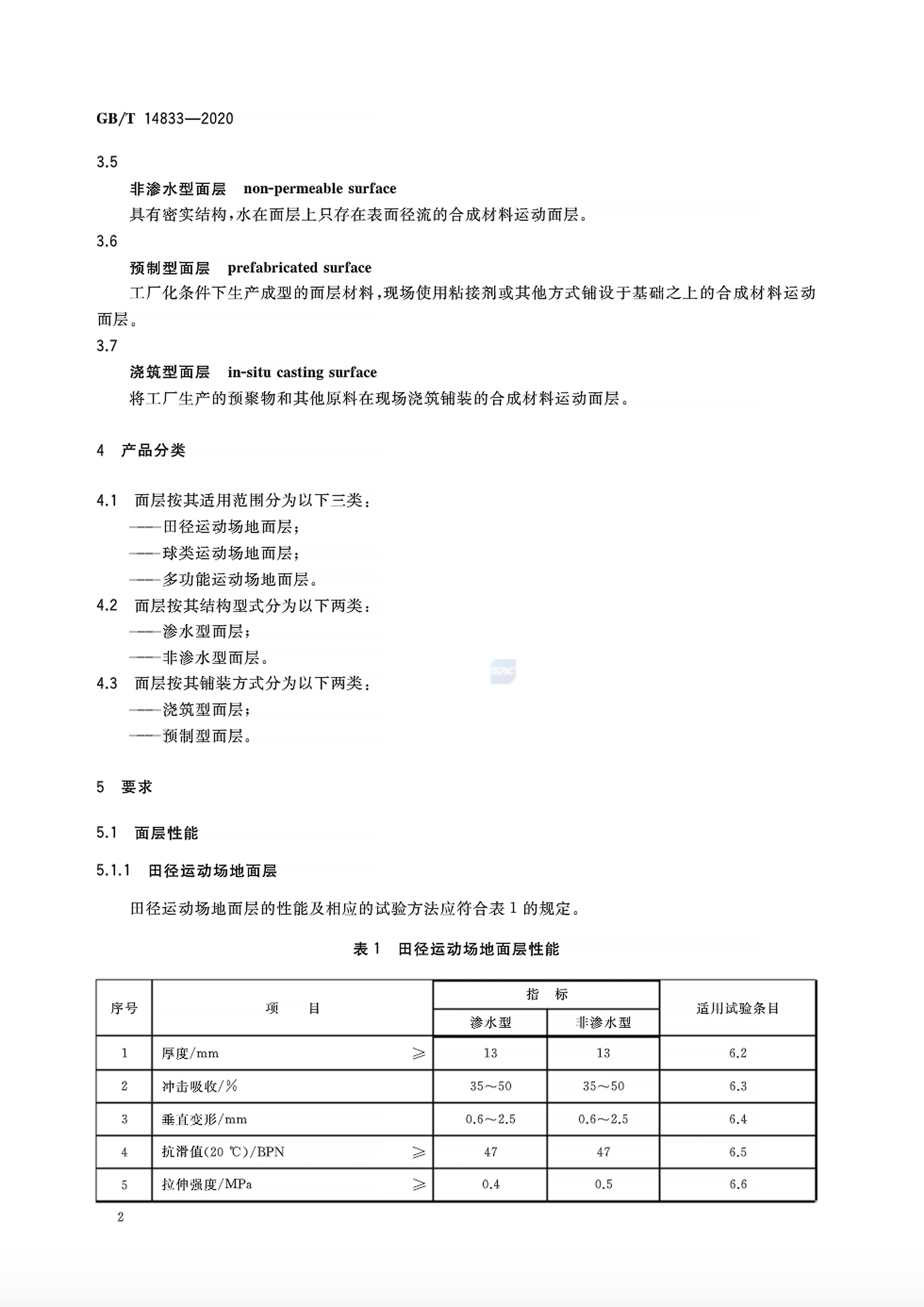 GB/T14833-2020合成材料運動場地面層