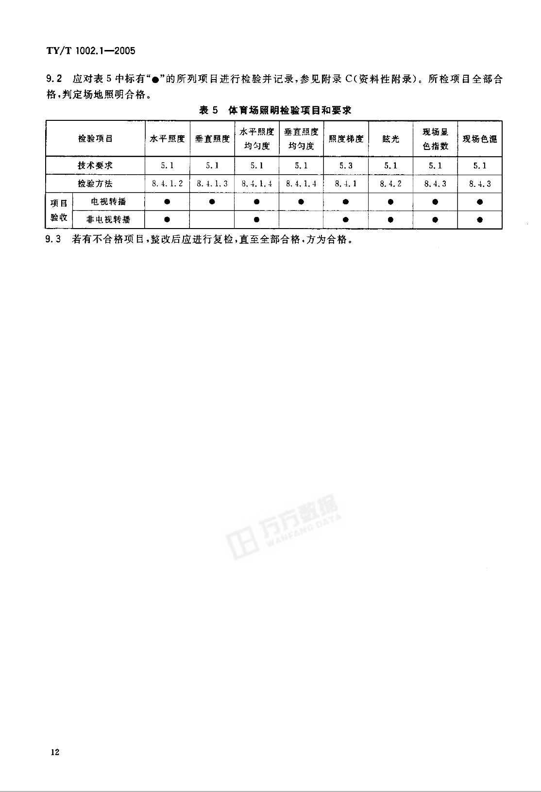 體育照明使用要求及檢驗方法