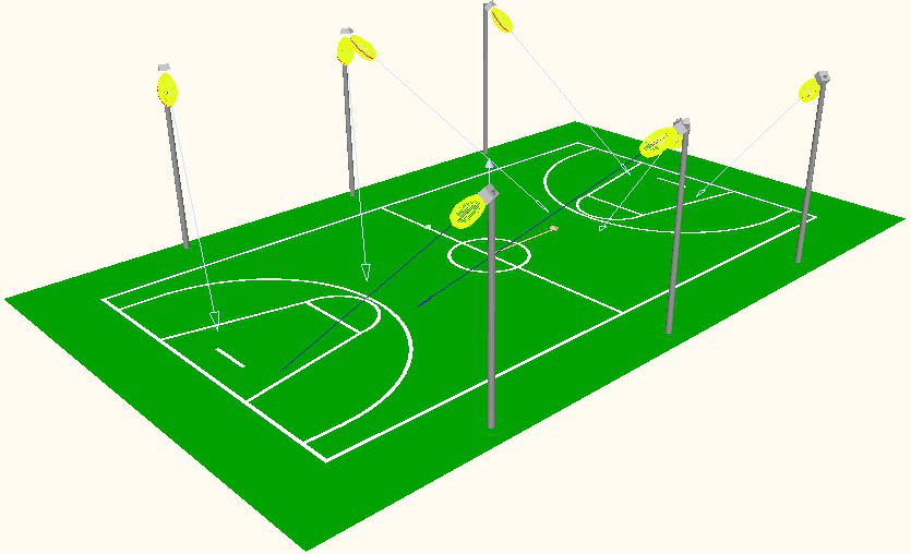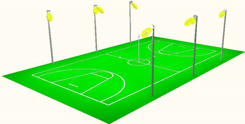 項(xiàng)目概括:籃球場(chǎng)照明,燈具安裝高度8米,照明要求:訓(xùn)練