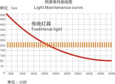 A、照度水平及均勻度保持5000小時(shí)恒定不變,為客戶(hù)提供保質(zhì)保量的燈光;