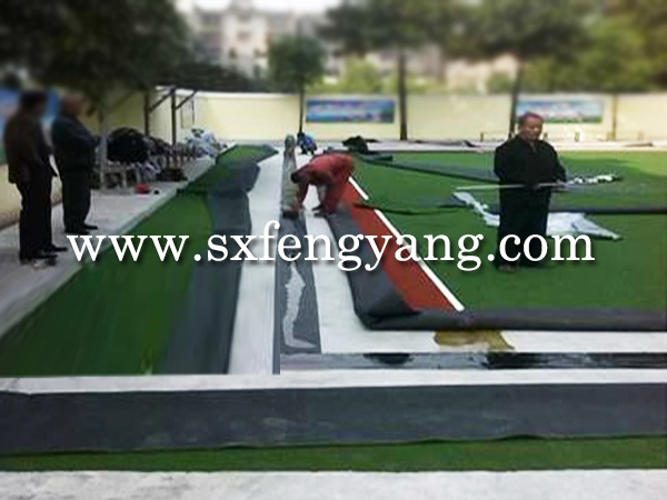 ③兩幅草皮接縫之間間隙不超過(guò)該產(chǎn)品的規(guī)格;兩幅草皮接縫線條應(yīng)平直,粘接緊湊不開膠,無(wú)明顯接頭。