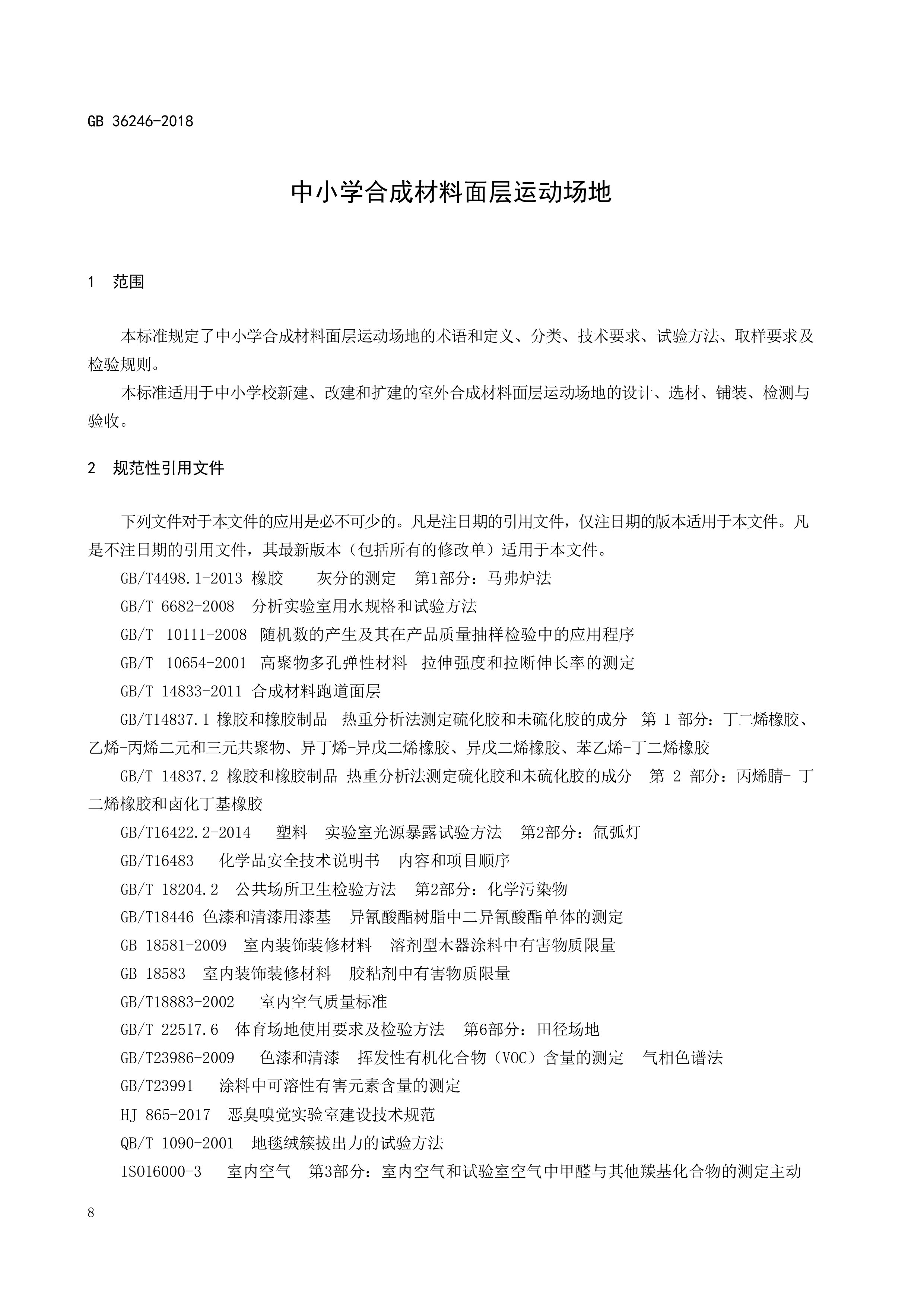 GB 36246-2018 中小學(xué)合成材料面層運(yùn)動(dòng)場(chǎng)地新國(guó)標(biāo)